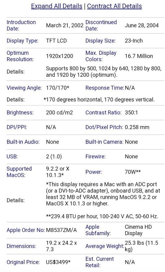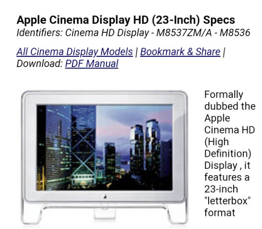 애플 크리스탈 시네마HD디스플레이 23인치입니다